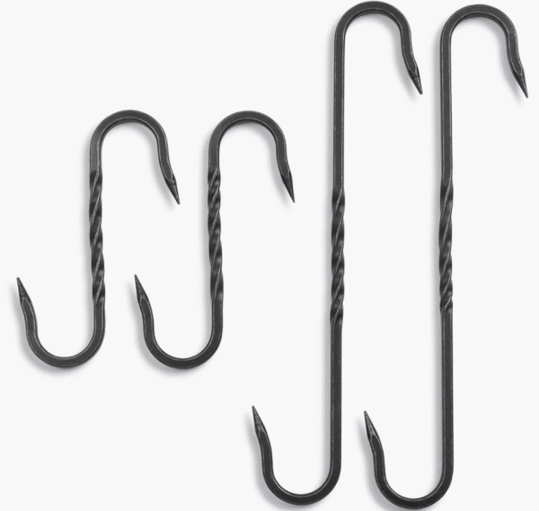 Het Cooking S Hook Set geeft de mogelijkheid om uw pan op gewenste hoogte te laten hangen en met de haken het vlees makkelijk door te prikken.