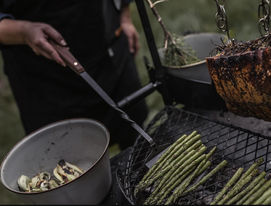 De Barebones Cowboy Grill Spatula is ideaal om uw steaks te controleren, hamburgers om te draaien en sauzen te verspreiden. Door de langere lengte dan gemiddeld is de spatel ook nog eens super veilig rondom het vuur en de hete kolen. De spatel is te gebruiken in combinatie met de Cowboy Fire Pit Grill. De spatel kan daar namelijk aan op gehangen worden, wanneer deze niet in gebruik is. De spatel is gemaakt van handgesmeed roestvrijstaal. Het handvat is zo ontworpen dat, ondanks de hitte, het volledig koel blijft. Dit komt door het walnotenhout waarmee het handvat gemaakt is.
