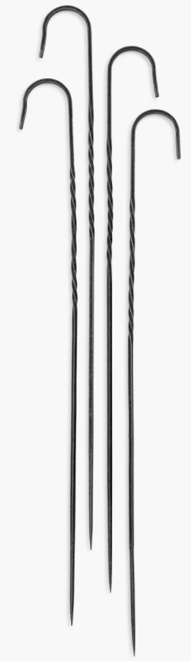De Barebones Cowboy Grill Steel Skewers zijn vleesspiesen die langer zijn dan de gemiddelde vleesspiesen en zorgen voor meer veiligheid rond het vuur. Door je kebabs, worstjes, kipsaté en groenten op deze pen te steken, zorg je ervoor dat ze perfect bereidt worden en makkelijk te eten zijn. De Grill Skewers zijn met de hand gemaakt en gesmeed. Dankzij de zorgvuldig ontworpen haak aan het uiteinde kun je de Grill Skewers gemakkelijk ophangen en opbergen als je ze niet gebruikt.