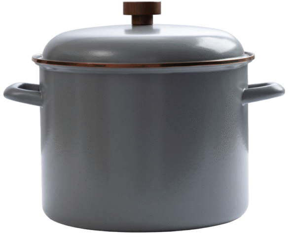 De Barebones geëmailleerde voorraadpot is geschikt voor het koken van soep, pasta, etc. en maakt je keukenservies compleet.