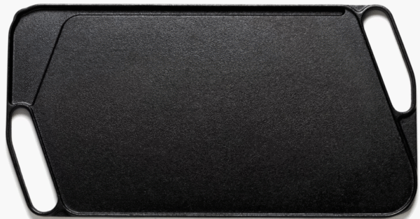 De Barebones Iron Griddle is een gietijzeren bakplaat van Barebones. Deze plaat bestaat uit twee kanten, een platte kant en een geribbelde kant. Je kunt de platte kant gebruiken om bijvoorbeeld eieren te bakken of fajitas te bereiden. De geribbelde kant kun je gebruiken om bijvoorbeeld hamburgers te grillen. De plaat heeft een antiaanbaklaag. De Iron Griddle heeft ook brede opvangkanalen voor vet, waardoor de plaat zelf schoon blijft. Daarnaast zorgt de positie van de handgrepen ervoor dat deze bakplaat makkelijk te hanteren is. Deze gietijzeren plaat heeft een kookoppervlak van 49,5 cm aan elke kant en weegt ongeveer 5,6 kg.