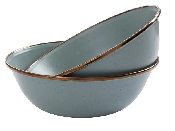 Het Barebones Enamel Bowl Set is een set van schalen dat ideaal is om uw gemaakte voedsel in te doen. Het is prachtig geëmailleerd stalen serviesgoed en kookgerei dat iedere tafel mooier maakt. Of u nu buiten eet of een beetje buiten naar binnen brengt. De schalen geven een mooie vintage uitstraling. Ieder item heeft een met de hand afgewerkte koperen rand, waardoor het unieke stukken zijn die toch samen een geheel vormen. De schalen zijn schoon te maken door middel van handwas. Gebruik hierbij geen agressieve schoonmaakmiddel om verkleuring te voorkomen. Ook raden wij u aan op de schalen niet in de magnetron te doen.